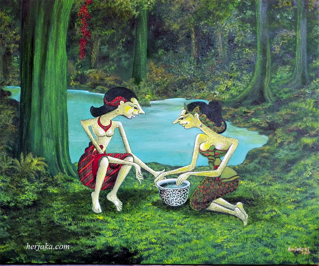 Sawitri telah terperangkap jala sutera Setiawan lukisan cat minyak pada kanvas 110 x 90 cm karya herjaka hs 2018